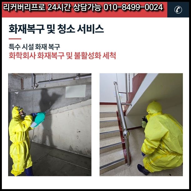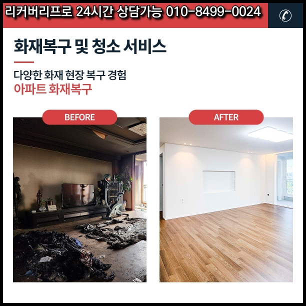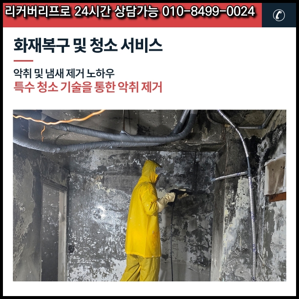 앞으로도 저희는 국가공인 자격과 풍부한 경험을 바탕으로 고객님의 공간을 안전하고 쾌적하게 되돌리기 위해 노력하겠습니다. 365일 24시간, 경기도 주민들의 쾌적한 주거환경을 위해 저희 리커버리프로가 함께하겠습니다. 전문 상담원이 화재 청소, 복구 공사, 보험 처리에 대해 친절히 안내해 드리고 있으니, 언제든 문의해 주시기 바랍니다. 감사합니다.